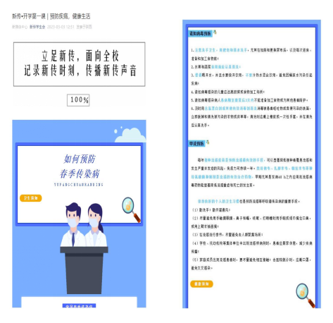 聚焦健康知识教育,加强政策宣传,上好健康教育第一课。为了加强春季各类传染病的预防工作,提升师生应对突发公共卫生问题的能力,学院就“当前如何做到新冠病毒感染乙类乙管”“甲流、诺如等常见传染病的预防”等内容开展了多项健康知识教育和宣传活动。学生返校后,辅导员深入学生班级、宿舍,引导同学们树牢并自觉践行“健康第一”理念,当好自身健康第一责任人,严格落实请销假、因病缺课缺勤登记追踪制度。提醒同学们返校后第一周自觉开展健康监测,倡导减少聚集、加强自我健康管理,出现不适症状及时报告,确诊后按照流程及时转入学校健康驿站或校外有关医院进行健康监测和适当治疗。学院微信公众号通过推送“预防疾病,健康生活”倡导同学们正确认识传染病,科学应对传染病,做好自己的健康管理。