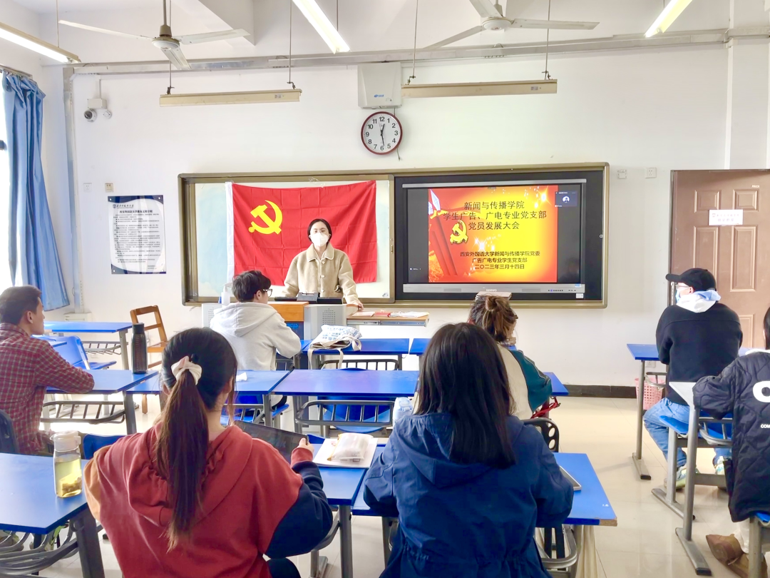 我院学生广告广电专业党支部于2023年3月14日中午12点30分在JD328召开了学生党支部发展和转正大会。会议由支部书记王嘉闻老师主持,我院学生广告广电专业党支部全体党员采用线下线上相结合的方式参加会议。